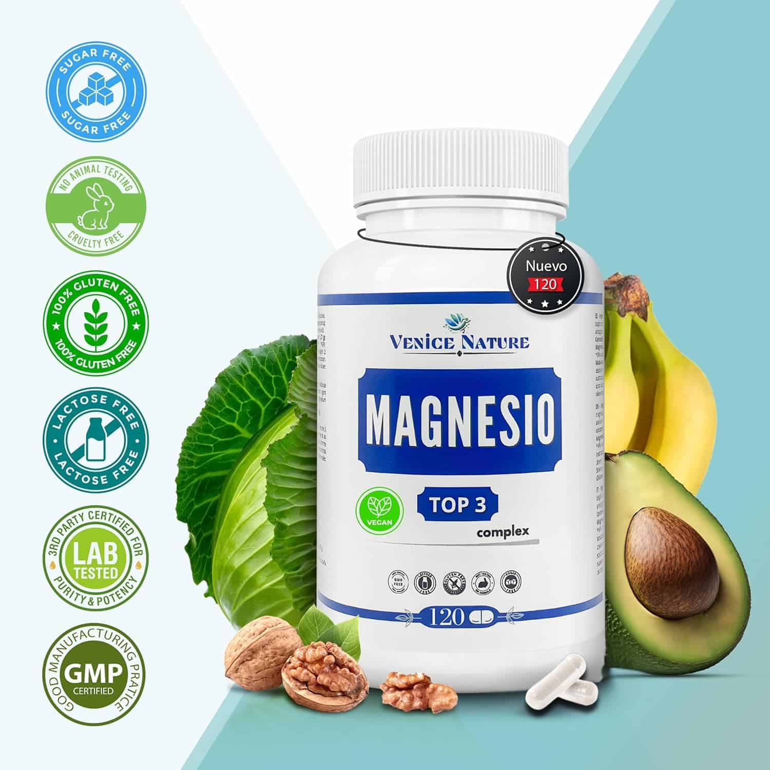 Magnesio Complex Puro con Citrato + Bisglicinato + Óxido | Venice Nature